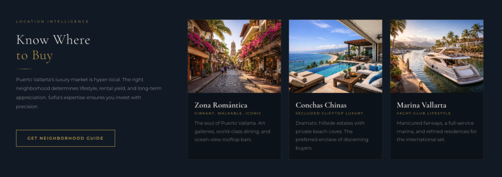 - Neighborhood guides for every area you serve written to attract the right buyers